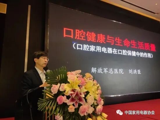 解放军总医院口腔医学中心刘洪臣教授在大会上介绍了口腔健康与全身健康的密切关系,例如口腔与肠胃疾病、心脏疾病、脑血管疾病、呼吸系统等甚至与皮肤、衰老、美容的关系。在口腔保健的三个主要步骤中,一刷、二通、三冲的步骤分别涉及到了电动牙刷、牙线、冲牙器等口腔电器的作用发挥。继而刘洪臣认为,口腔感染问题不可忽视,家用电器口腔保健应该上升到国家战略层面。深圳瑞圣特科技有限公司董事长李冬保