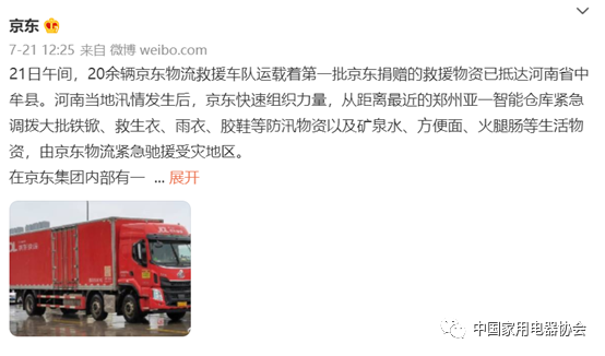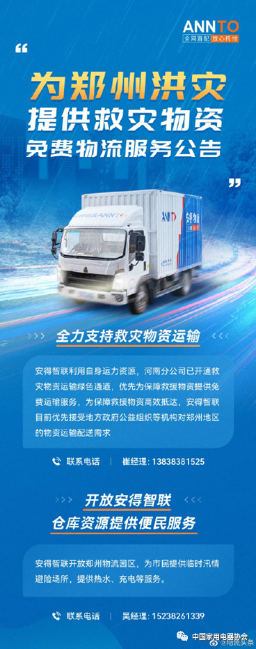 美的安得智联为郑州洪灾提供救灾物资免费物流服务;为保障河南人民的基本生活,提供开通免费救援物资绿色通道、开展家电免费上门服务、提供家电以旧换新服务、提供免费便民救助服务的服务