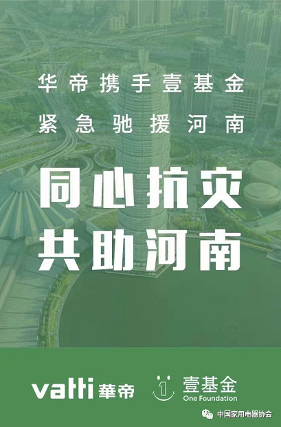 华帝携手壹基金调拨设备、民生物资等驰援河南。