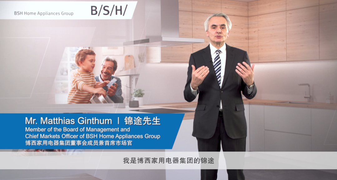 博西家用电器集团董事会成员兼首席市场官Matthias Ginthum(锦途先生)分享了博西家电观察到的家电产业消费趋势,分别是嵌入式产品崛起,健康除菌家电关注升级,智能化尤其是全屋智能在未来将成为生活的基础构架;此外,个性化定制消费以及涉及可持续发展的环保消费、绿色消费将成为家电产业进化的必由之路。
