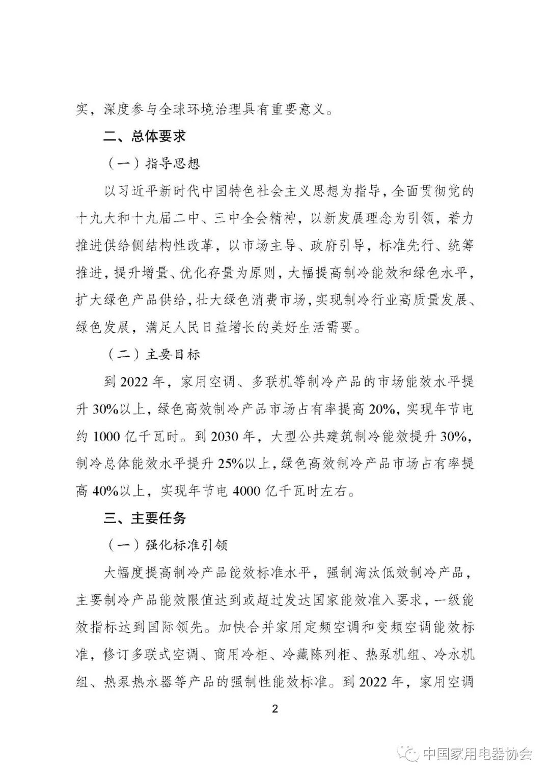 方案主要目标为:到2022 年,家用空调、多联机等制冷产品的市场能效水平提升30%以上,绿色高效制冷产品市场占有率提高20%,实现年节电约1000 亿千瓦时。到2030 年,大型公共建筑制冷能效提升30%,制冷总体能效水平提升25%以上,绿色高效制冷产品市场占有率提高40%以上,实现年节电4000 亿千瓦时左右。