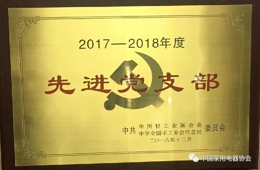 中国家用电器协会党支部获得2018年度先进党支部荣誉称号