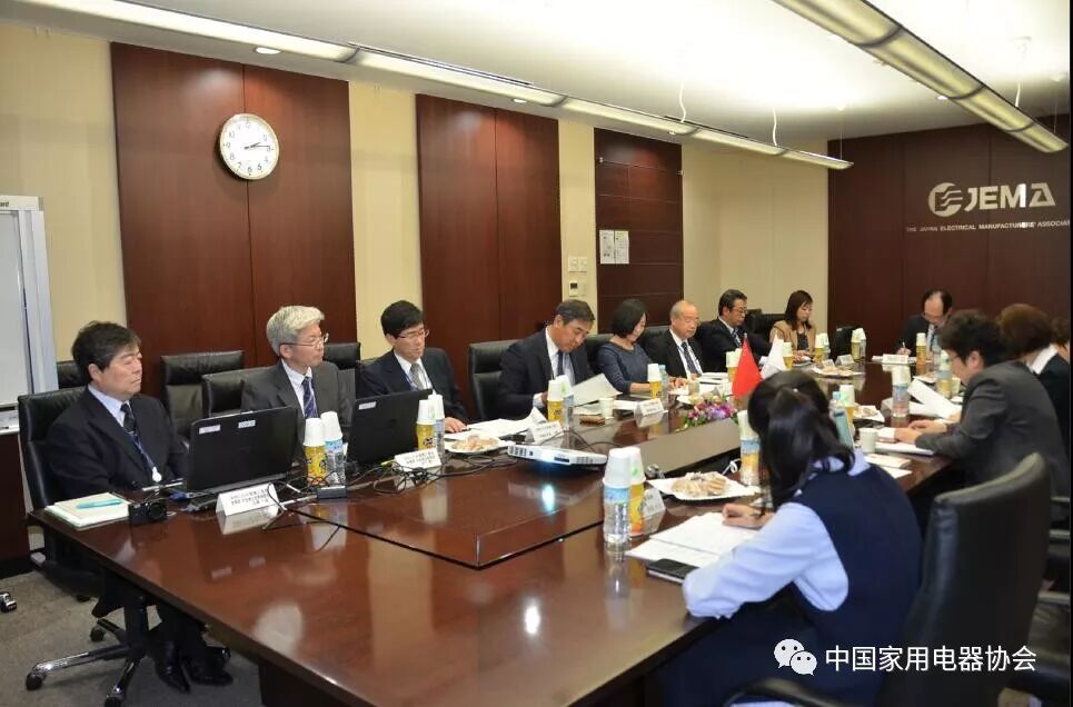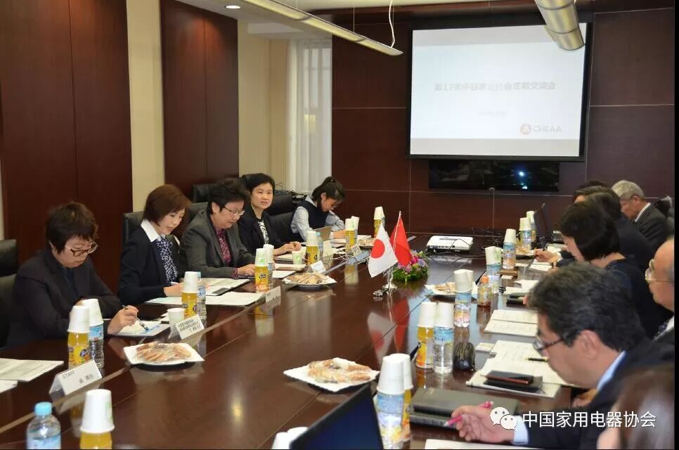 2018年12月5日,第17次中日家电协会定期交流会在日本东京举行。中国家用电器协会理事长姜风率团参加了此次会议,日本电机工业会(JEMA)新任专务理事高本学、常务理事本松修、新任家电部长新正广以及其他部门负责人出席了交流会。