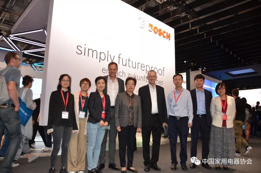 受博西家用电器投资(中国)有限公司董事长兼总裁盖尔克先生、高级副总裁Mr.Jaeger的邀请,2018年9月1日,中国家用电器协会理事长姜风、秘书长朱军等一行人前往IFA博西家电展位参观交流。