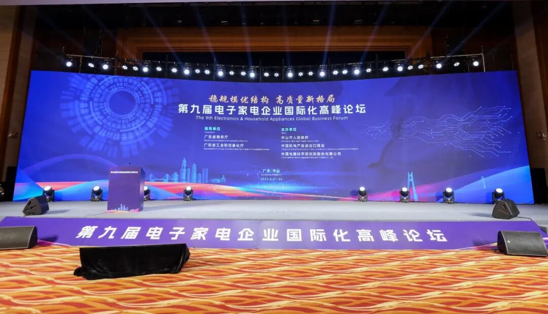 近日,由中山市人民政府联合中国机电产品进出口商会和中国电器科学研究院股份有限公司共同主办的第九届电子家电企业国际化高峰论坛在中山召开。