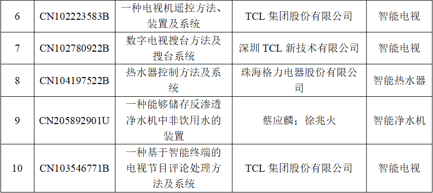 表5 新增公知公用专利技术列表(数据来源:壹专利)