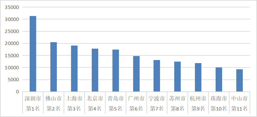 图1 智能家居产业国内城市专利量排名情况TOP11(数据来源:壹专利)