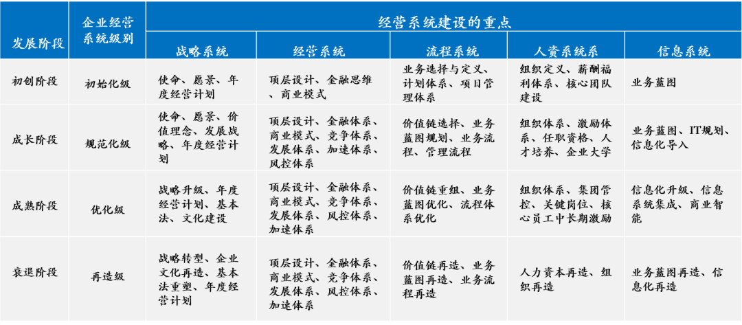 不同的企业发展阶段企业管理系统建设有不同的侧重点。