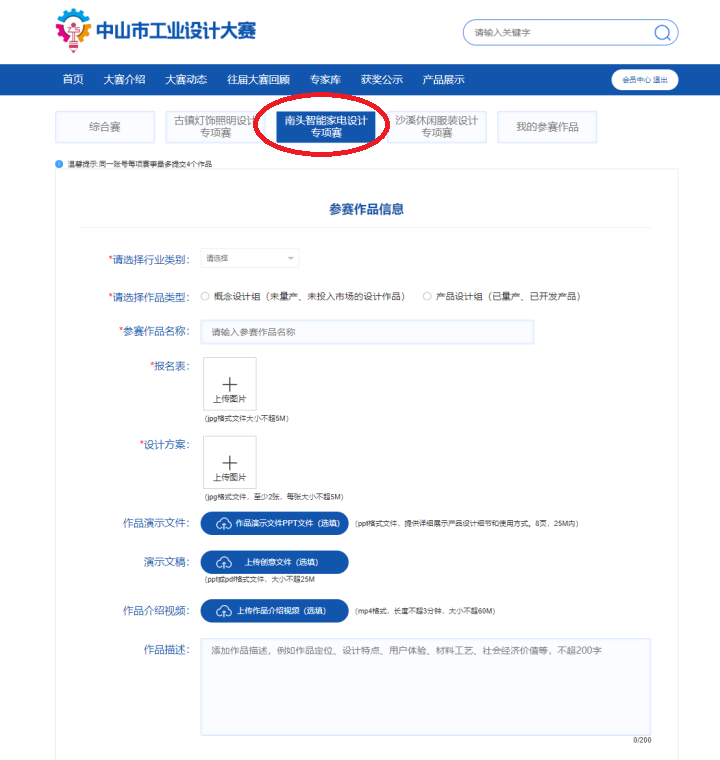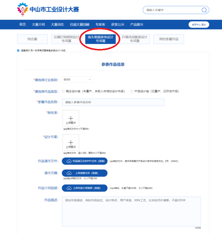 点击“南头智能家电设计专项赛”,按作品要求上传作品。