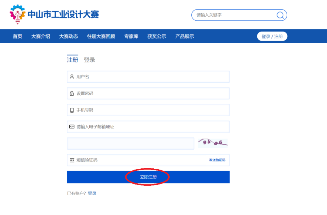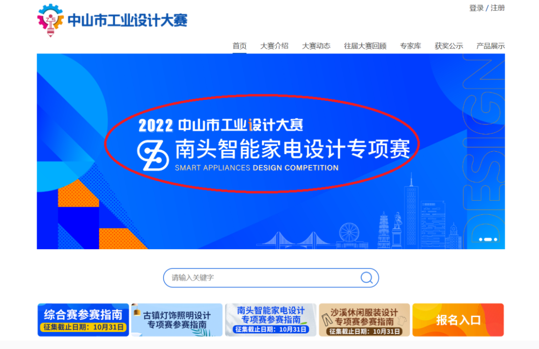 进入2022中山市工业设计大赛官网(http://zs-id.zsnews.cn/),点击 Banner“南头智能家电设计专项赛”进入登录页面。