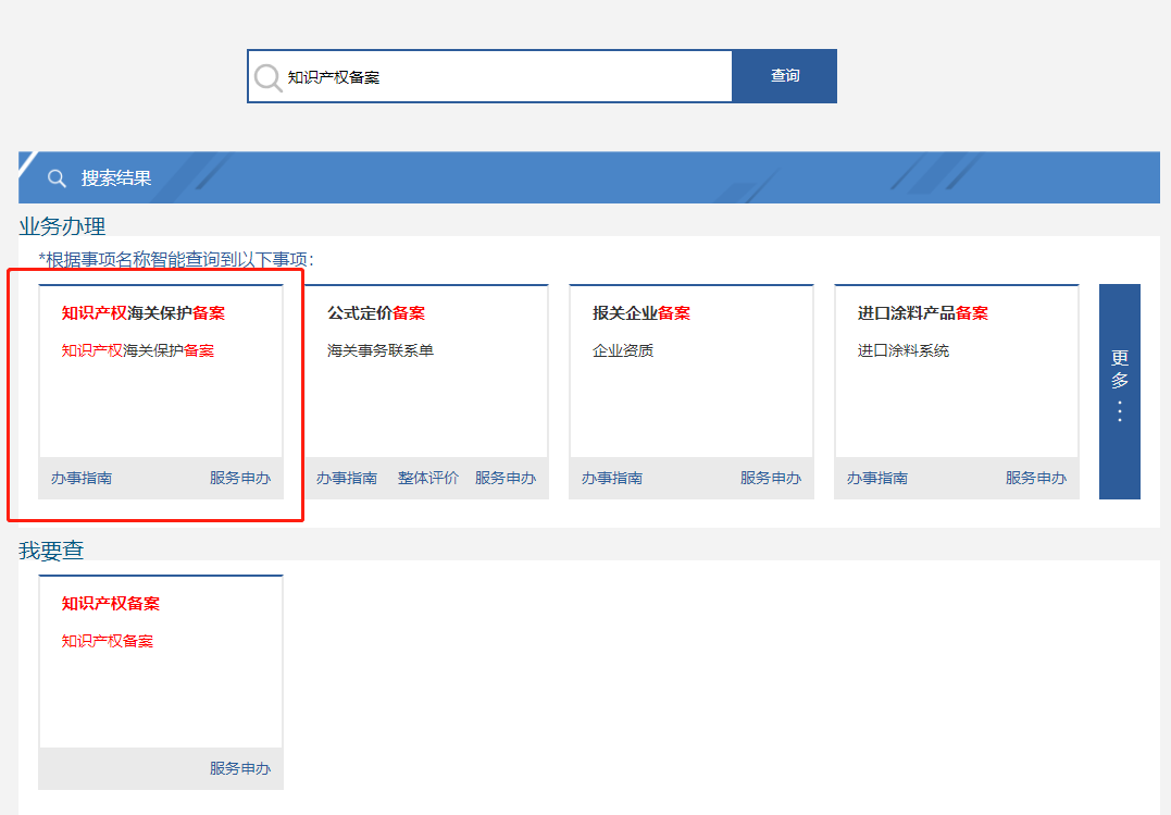 申请人登录海关总署网站(www.customs.gov.cn)→点击“我要办”→搜索“知识产权海关保护备案” →在线填写备案申请表