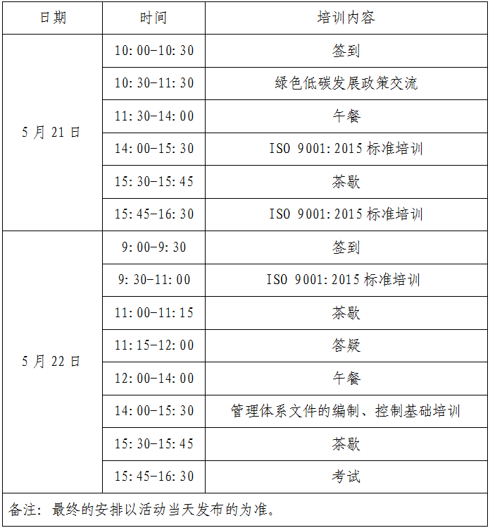 为贯彻落实党的十九大质量发展新理念和《中共中央国务院关于开展质量提升行动的指导意见》,推进产业2030、2060双碳目标、“十四五”工业绿色发展规划,提高制造业、服务业质量和效益,夯实质量提升基础,促进中山家电产业绿色高质量发展,现举办绿色低碳发展政策交流暨ISO9001质量管理体系标准内审员培训。