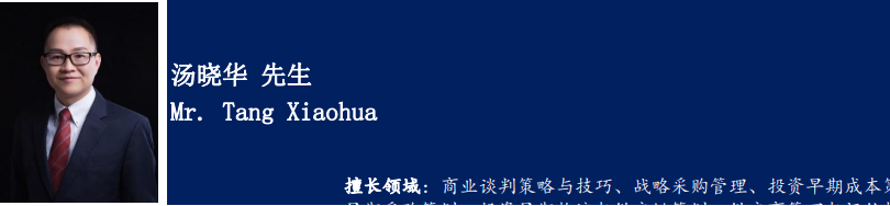我们特邀请擅长商业谈判策略与技巧、战略采购管理、投资早期成本策划等领域的实战专家汤晓华先生进行指导,帮助会员企业提高采购与供应商管理水平再上台阶。