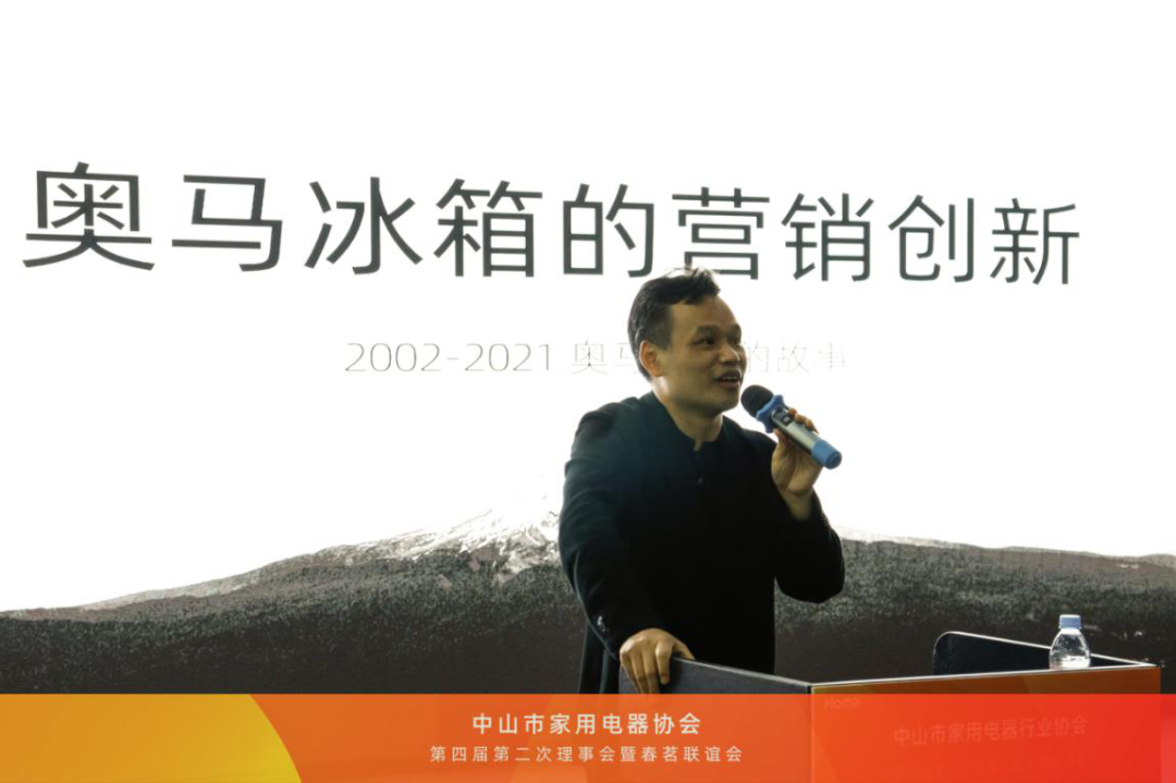 会上,协会常务副会长姚友军就中山家电企业如何在激烈的市场竞争环境下,变挑战为机遇,保持企业发展的续航能力,以“营销创新”为主题,分享了奥马的成长故事。