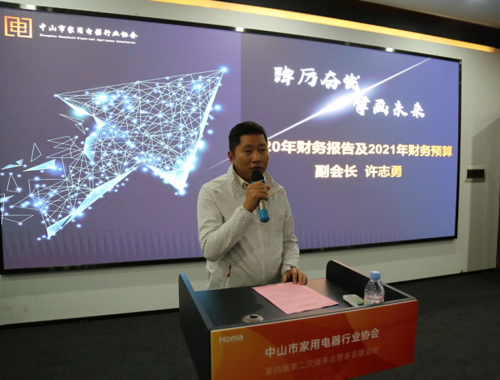 副会长许志勇汇报协会2020年财务工作总结和2021年财务预算。协会各项财务运作严格按照相关法律法规、《中山市家用电器行业协会章程》、《财管理制度》、《财务支出审批规定》等规范要求,有效管控财务,做到制度健全、数据真实、凭证有效,为协会长期发展提供有力保障。