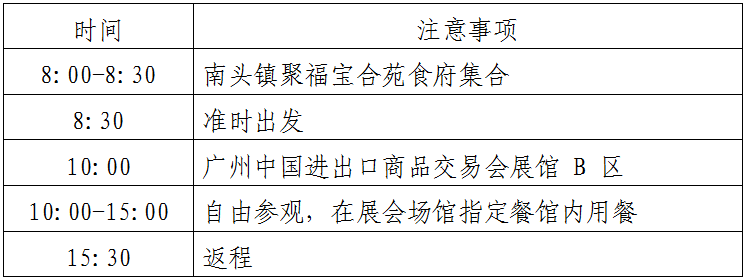 本次活动免费,含午餐和专车往返。请有兴趣参加的企业于3月1日16:00前填妥《报名回执》后回复至秘书处。《报名回执》请点击下方“阅读原文”进入协会官网下载,或关注“中山市家用电器行业协会”公众号后直接回复“主题+企业名称+姓名+职务+手机”(如:广州国际工业自动化技术及装备展览会+赵XX+经理+139XXXX)
