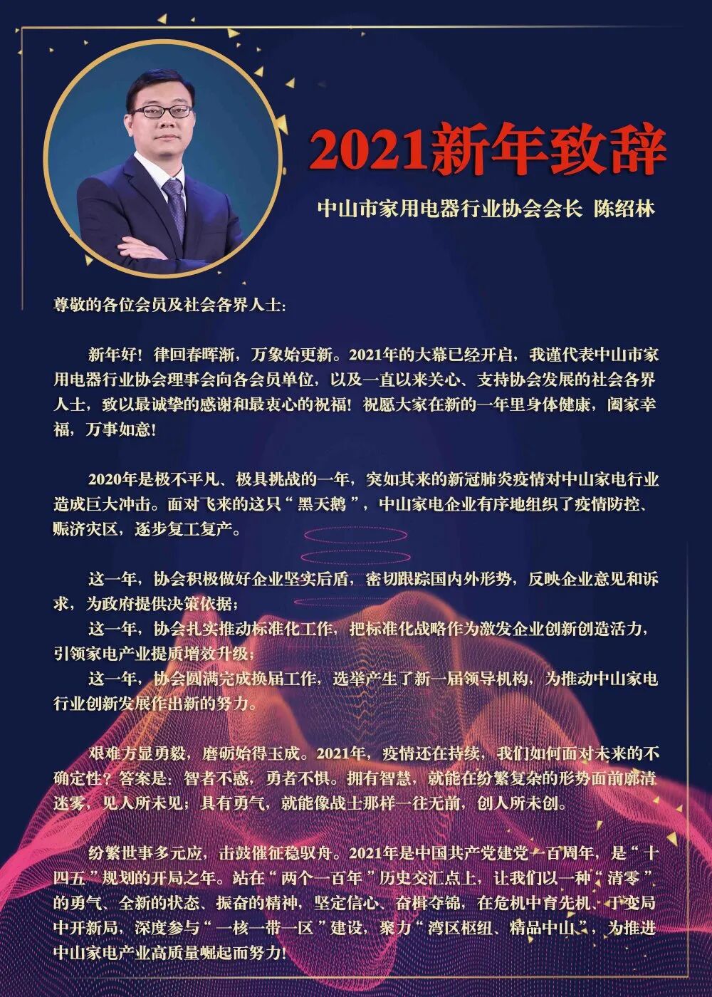 感谢大家一直以来对中山市家用电器行业协会工作的关注和支持!根据国务院2021年春节放假时间安排,结合我会工作实际情况,2021年春节假期安排通知如下: