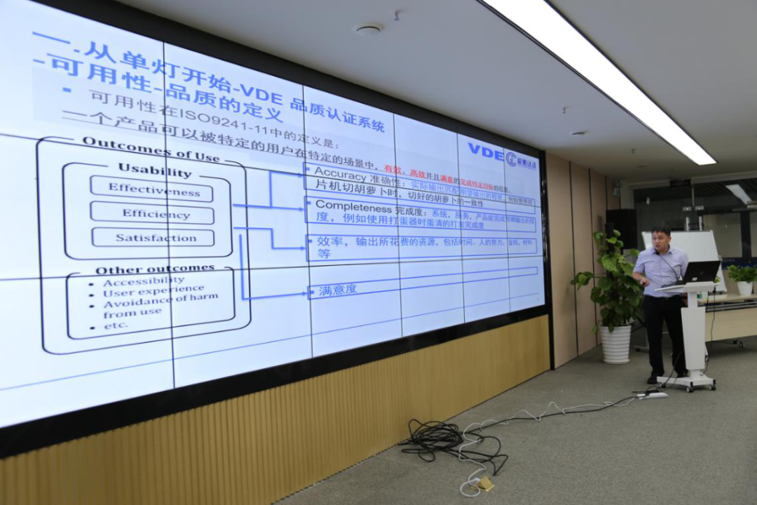 鉴衡巍德谊(广东)检测认证有限公司相关工作人员以照明灯具为例,讲解公司认证检测流程。