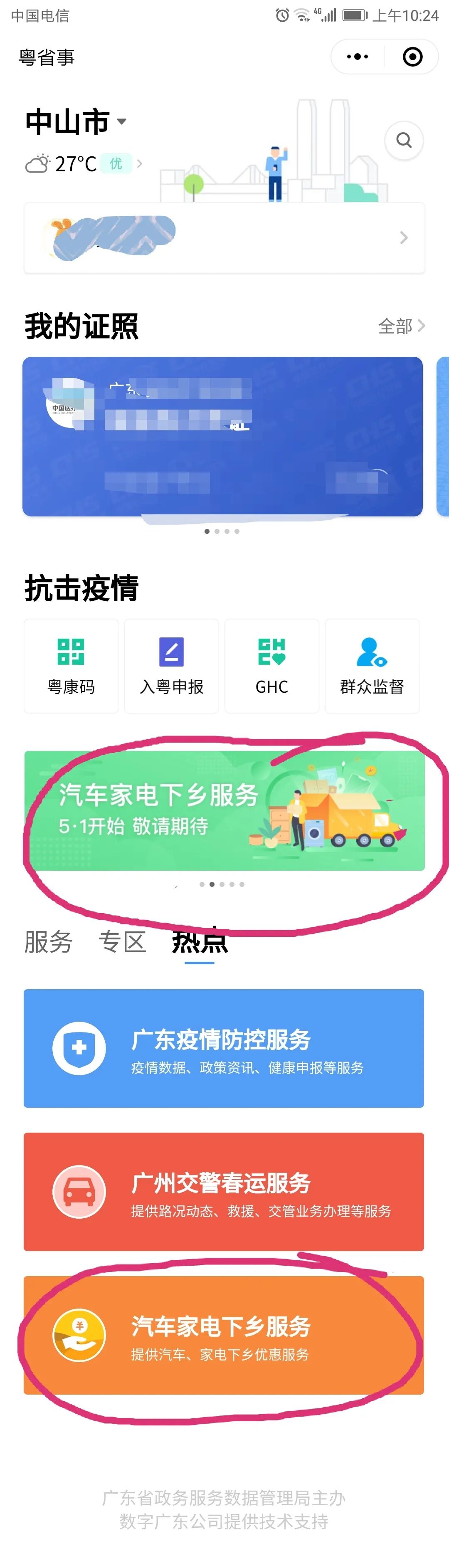 据介绍,家电下乡补贴行动依托“粤省事”小程序进行。农村居民不用提交纸质材料、不用跑到政府窗口现场办理,通过手机微信登录“粤省事”小程序,进入“家电下乡”这个模块选择商品,可以看到政策公告、销售网点查询、申请优惠资格3个功能。购买家电时,可以在参加活动的销售网点选好家电,在申请优惠资格这个功能里,点选产品品类、品牌型号、销售网点信息,填入实际购买价格、收货人地址,提交后生成优惠码,现场向销售人员出示,就可以以优惠价格购得选中的家电。