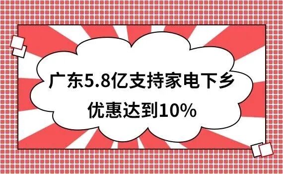 根据广东省财政厅官网信息,广东省财政统筹安排17.8亿元补贴资金支持汽车和家电下乡,促进农村消费提质升级。其中,省财政专门安排5.8亿元支持开展2020年家电下乡专项行动。