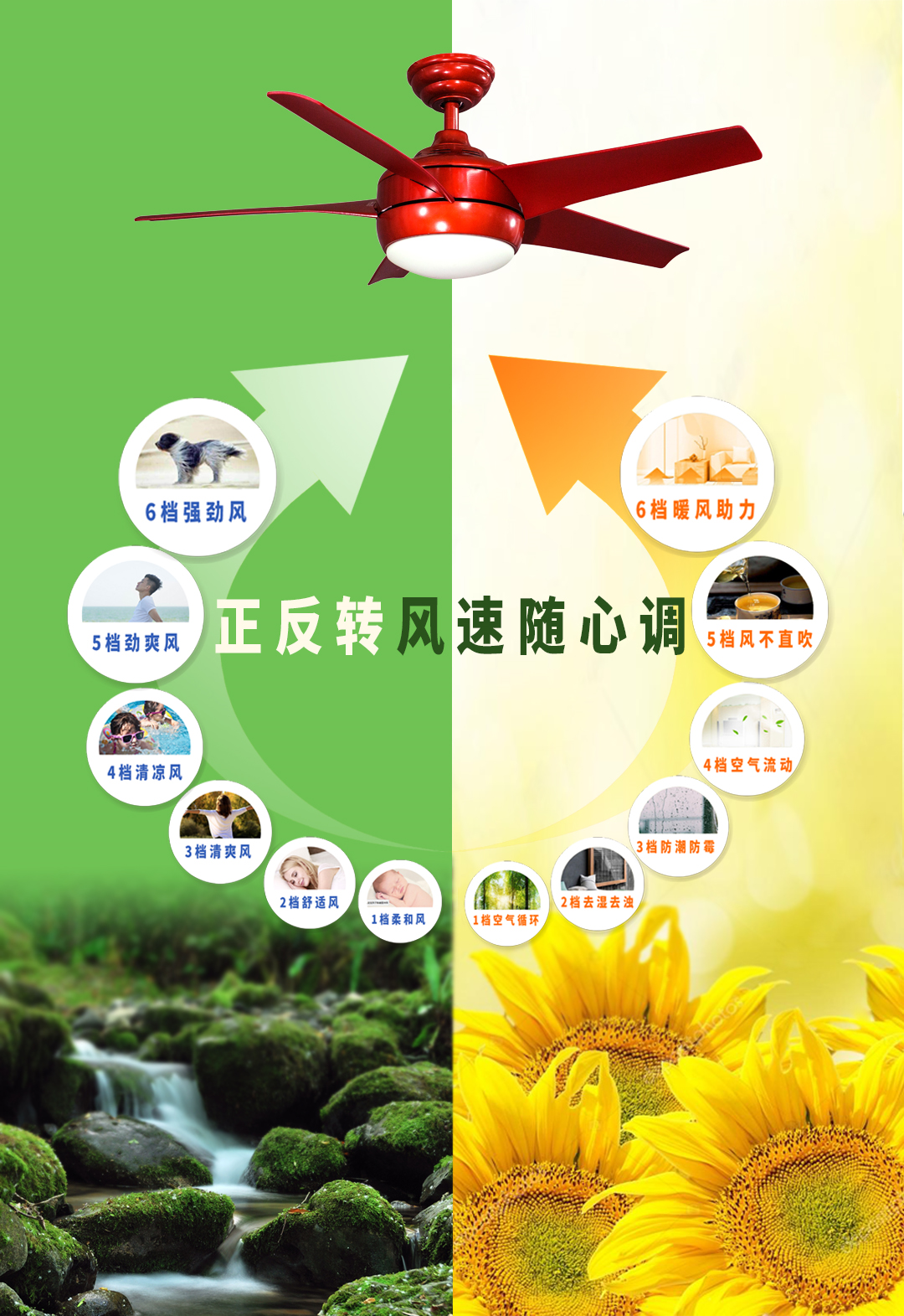 它就是岚元扇,源自台湾,盛于北美,产于广东。40年传承,解密空气流动密码,营造舒 适健康的室内环境,岚元扇不仅拥有自然的风感,静、美、稳等匠心独运的特质、高雅而简致的格调,并且其正反转切换、多档位变频风速等功能加持也成为其翘楚业界的关键。 变频风速随意调不同于普通的风扇一般三档风速可选,岚元扇可达到变频正反各六档档风速,直流电机高速运转产生压力差,形成柔和稳定对等的气流,细腻分割风感,小档柔和舒适,大档风力强劲,你想要的风它都有,独特模拟自然风感和风速技术,满足消费者各种场景应用和体感所需。
