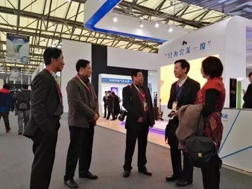 中国家用电器协会秘书长朱军(右二)与中山家电协会AWE2016观展团领导亲切交谈