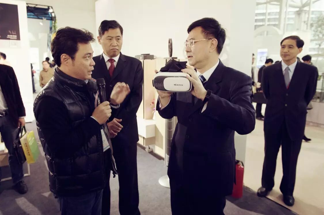 乐宜嘉董事长马靖向中山市委书记薛晓峰讲解乐宜嘉VR智能体验系统