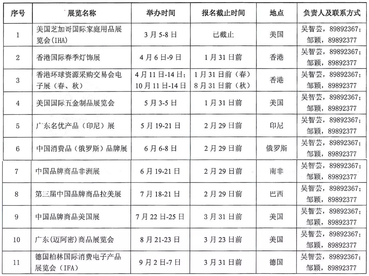 2016年中山市商务局重点展览计划