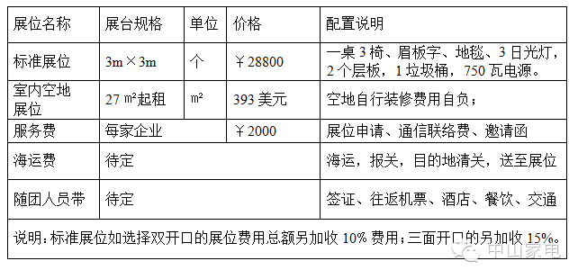 本次展会可申请国家中小型境外开拓市场资金专项补贴,每个标准展位补贴约为50%-70%左右,最多可申请27平方米的展位费补贴。请有兴趣参展的企业于2016年4月20日下午16:00前填妥《参展报名表》回传至协会秘书处。