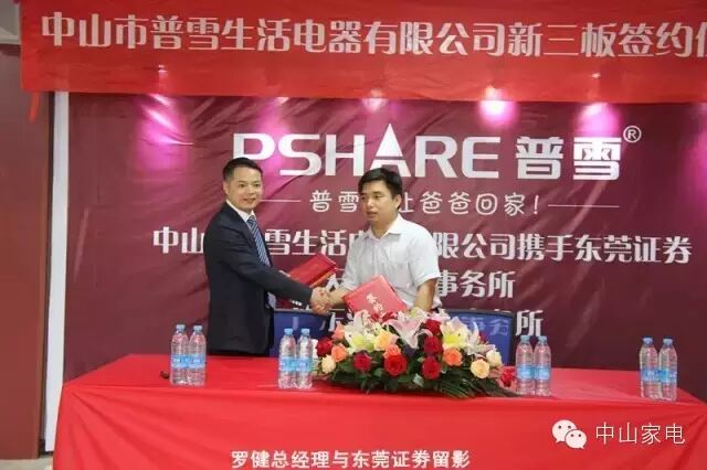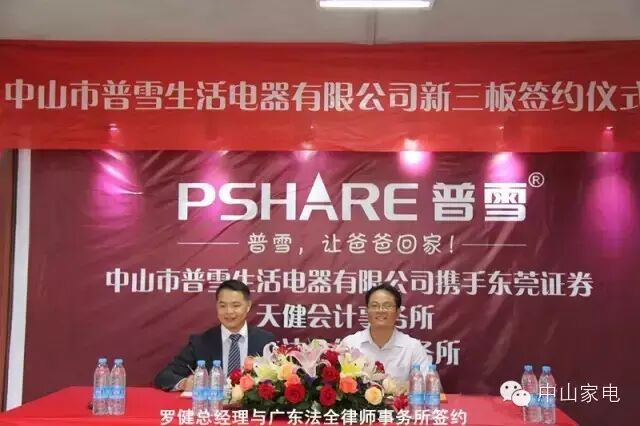 中山市普雪生活电器有限公司举行新三板项目签约仪式