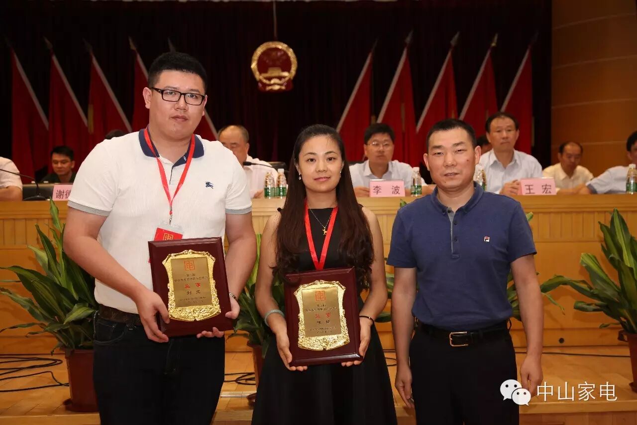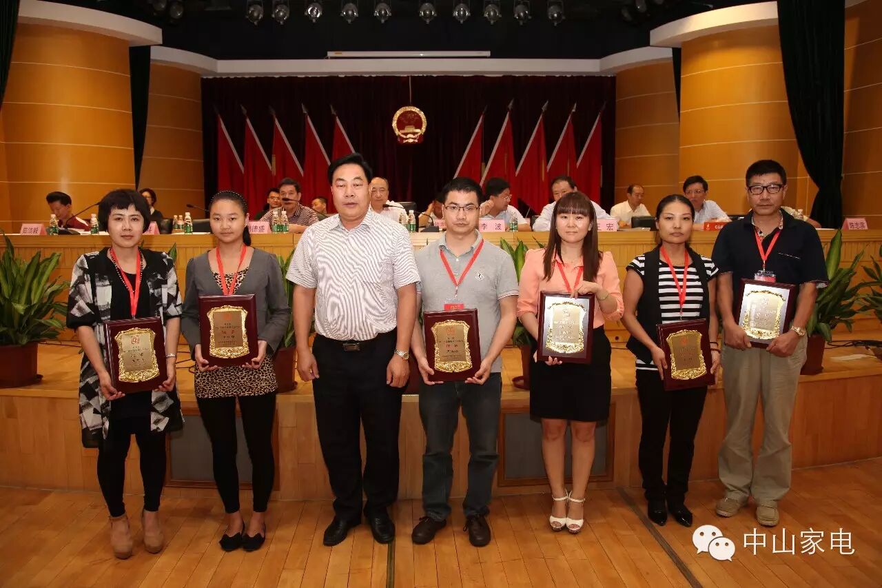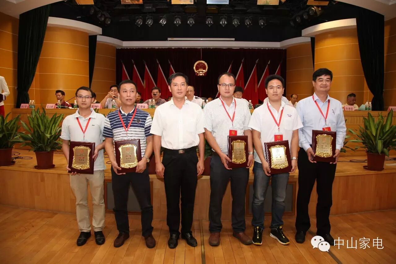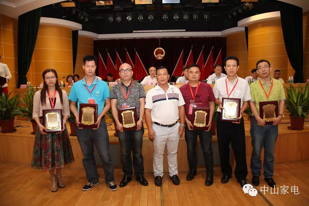 南头镇党委副书记陆洁强为理事单位:中山市春天厨具有限公司、中山市普雪生活电器有限公司、中山市汉基电器有限公司、广东伊莱特电器有限公司、中山市维奥仕电器有限公司、中山市朗迪电器有限公司颁牌