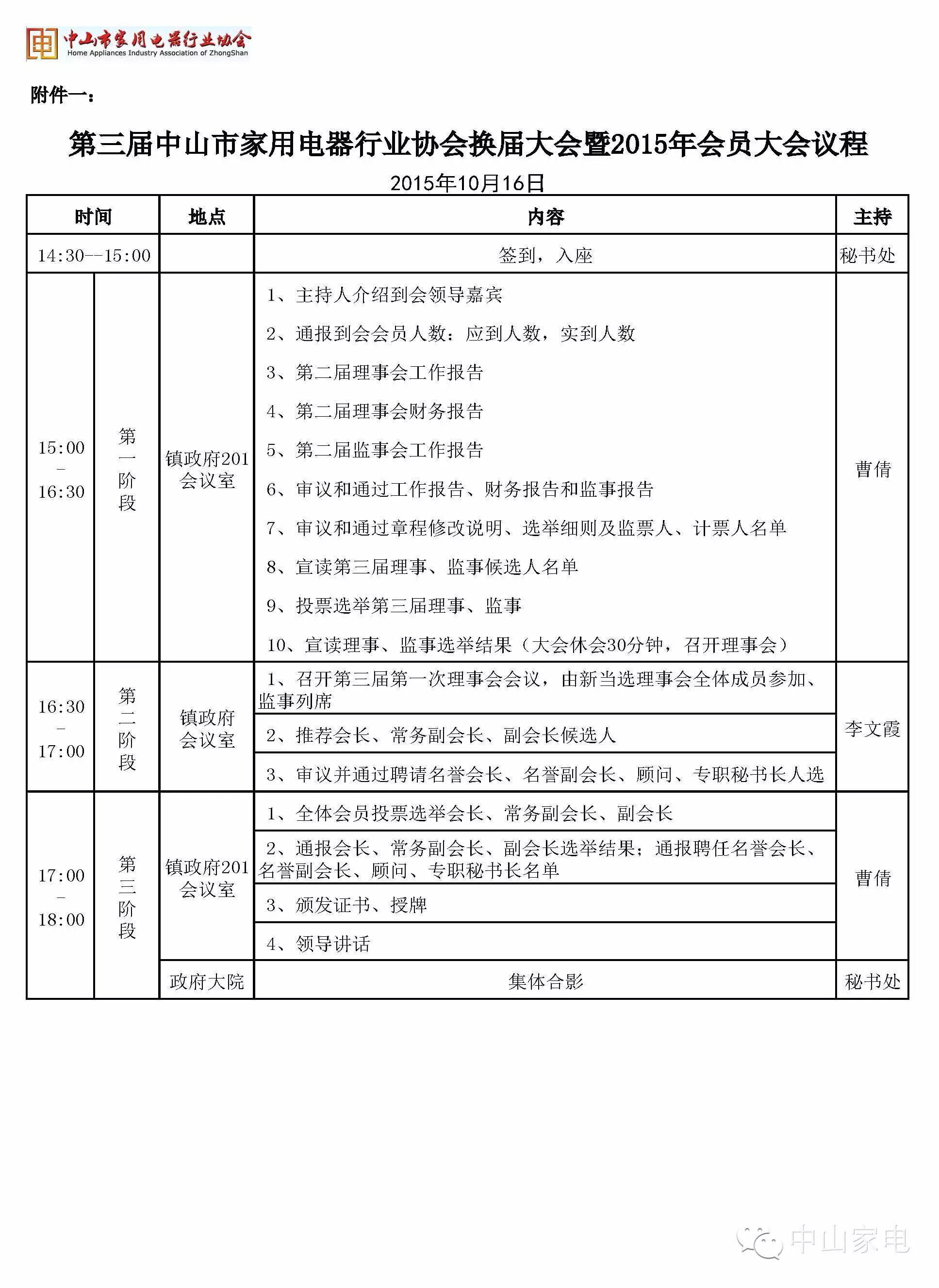 【通知公告】第三届中山市家用电器行业协会 换届大会暨2015年会员大会