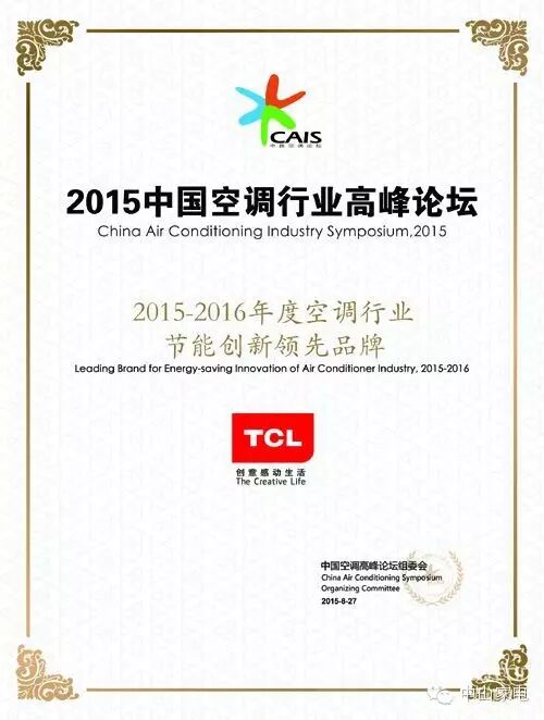 TCL获“2015-2016年度空调行业节能创新领先品牌”奖