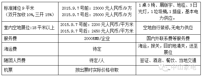 符合条件的企业可申请国家开拓国际市场专项资金50%-70%的补助,请有兴趣参加的企业填妥《参展报名表》于2015年9月7日下午16:00前回复秘书处。