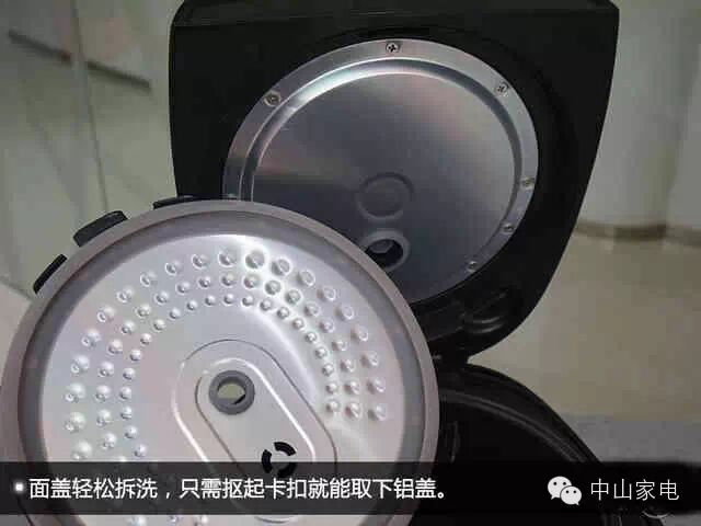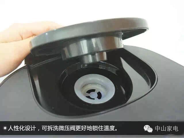 可拆洗微压阀能够更好锁住饭煲温度,对米饭进行微压处理,避免煮饭时造成溢锅现象。将水蒸气采集槽设置在上面,增大了集水区面积,有效避免了水蒸气溢出来的情况,清洗也变得简单方便。