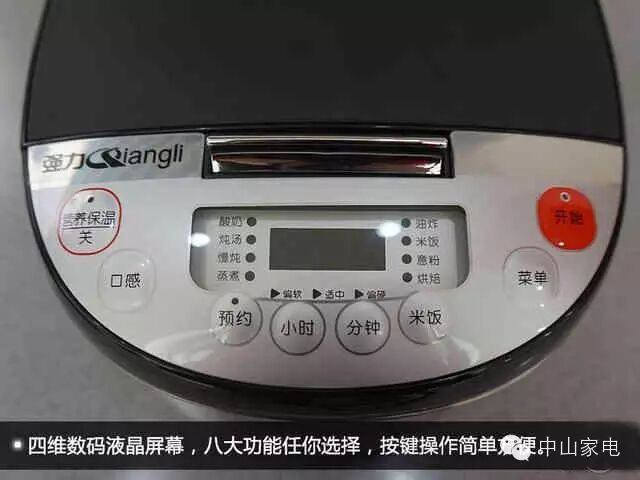 全文总结:强力QL40-801电饭煲外观简约时尚,外壳采用拉丝不锈钢材质,防磨防刮。具备多种烹饪功能以及智能预约煮饭功能,内胆采用“蜂窝”聚能金色内胆,不粘锅加热更全面,煮出来的米饭口感极佳。四维数码液晶屏幕,搭配简易的按键操作界面,轻松搞定烹饪问题,省时省电,是一款性价比高的智能电饭煲。