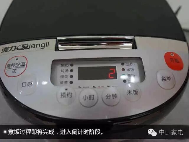 强力QL40-801电饭煲有个与众不同的功能,就是控制面板上的“口感”键,这是针对米饭功能所设计的,有三种口感供大家选择,分别是:偏软,适中,偏硬。本次,小编选择的是口感是适中,煮饭模式为默认模式,按下开始键,电饭煲就进入了工作状态。