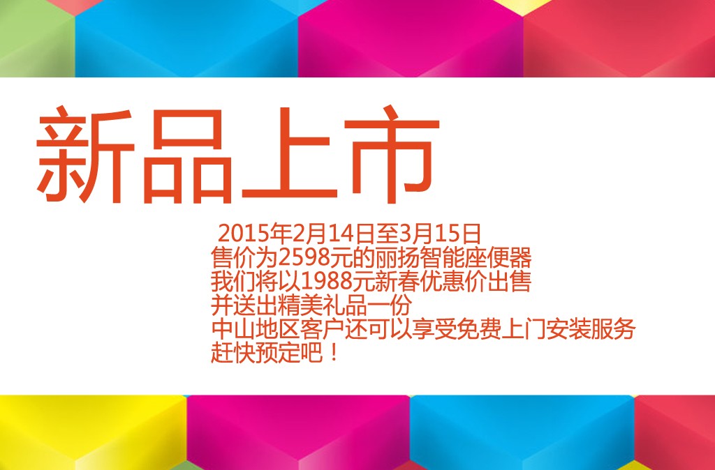 时尚、健康而又有品质的生活,就要让自己和家人得到更贴心的服务和更细致的关怀。“丽扬”的出现,旨在引领国人生活走向新时尚新理念。选购“丽扬”,让马桶没有异味,PP远离细菌,也让家人在寒冷冬季,半夜欢快地去一趟“泉水叮咚”。记者感觉到,尽管春节期间严寒袭人,但春天的暖暖气息不时从眉头悄悄拂过。正如行业人士预言:2015年是智能马桶盖爆炸的一年,也是智能马桶盖的春天。“丽扬”智能马桶盖,在百姓迎春接福之际,你做好领跑2015年智能马桶盖的准备了么?