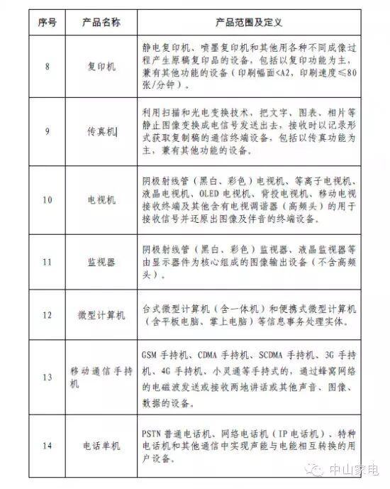 记者了解到,新版目录在第一批目录(冰箱、空调、洗衣机、彩电、电脑)的基础上,将品类扩大至14类,其中新增家电品类有吸油烟机、电热水器、燃气热水器,至此,在废旧电器产品处理目录中,总共有7类家电产品;新增电子类产品有打印机、复印机、传真机、监视器、微型计算机、移动通信手持机以及电话单机。