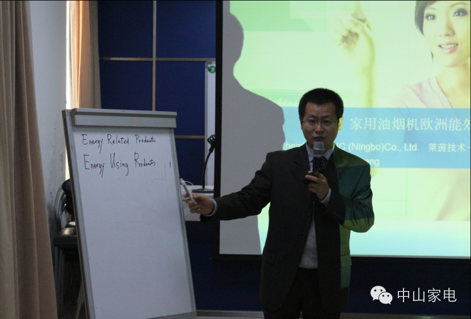 为加强“暖企”服务,2015年1月16日,中山家电行业协会携手德国TUV莱茵集团中山分公司举办的欧洲能效指令宣讲研讨会在中山市家电创新中心三楼召开。中山市各镇区的主要烟机、烤箱灶具等近三十家生产企业参加了会议。