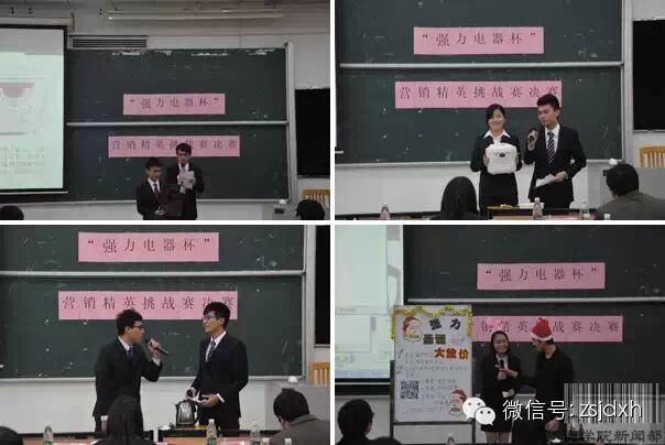 12月23日星期二晚19:00,“强力电器杯”营销精英挑战赛决赛在教学楼F215隆重举行。这次比赛由广东强力集团中山电器有限公司主办,广东外语外贸大学商学院承办。出席本次比赛的嘉宾和评委有广东强力集团中山电器有限公司总经理刘斌、外贸部经理许思廉、电商部经理许彬;我院党委副书记罗海洋、团委书记李晟以及袁群华、陈琛老师。