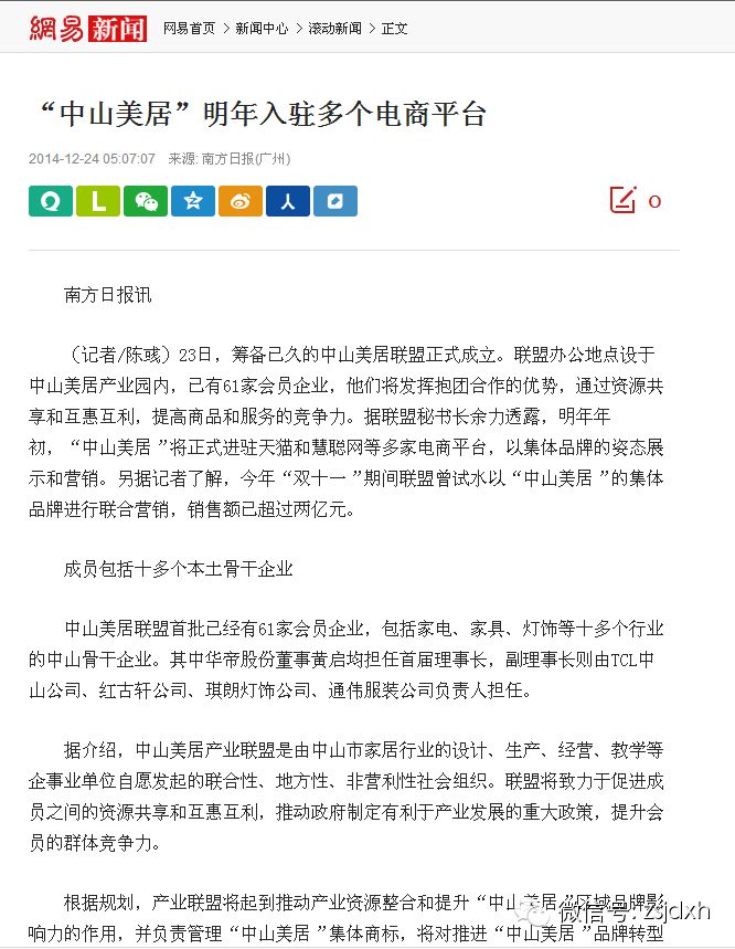 目前,中山美居产业联盟正在与天猫、慧聪网等电商平台洽谈合作,预计明年初“中山美居”这个集体品牌将入驻多家电商平台,其连接的是中山美居产业联盟旗下的各个品牌,进行集中展示和销售。