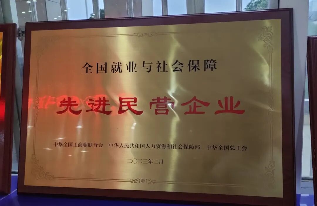 ▲“全国就业与社会保障先进民营企业”荣誉奖牌