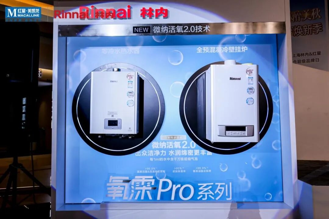 活动现场,上海林内重磅发布了旗下全新产品——林内氧霂Pro系列全预混冷凝壁挂炉和氧霂Pro系列零冷水热水器,成为现场焦点。