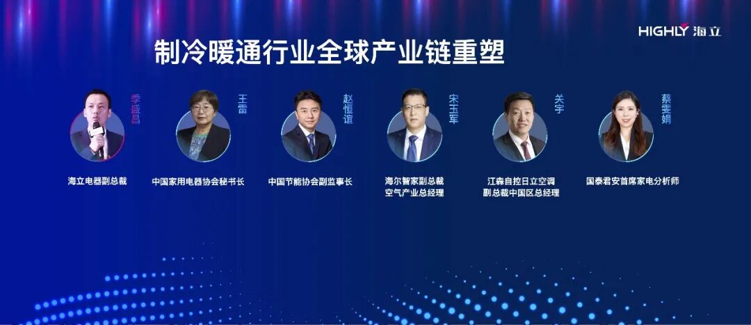 中国家用电器协会秘书长王雷在致辞中就全球气候变化对空调产业产生的影响做了交流。复旦大学经济学院副院长寇宗来、上海交通大学教授丁国良分别围绕全球宏观环境变化及产业格局调整趋势、全球冷暖在双碳减排背景下的行业发展方向作专题分享。
