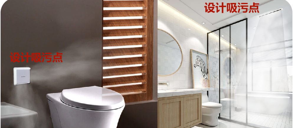让污区即家庭空气污染源(如厨房、卫生间等区域)永远形成负压环境,保证污浊空气流不会流向卧室等洁净区域,而是从污浊处排出。