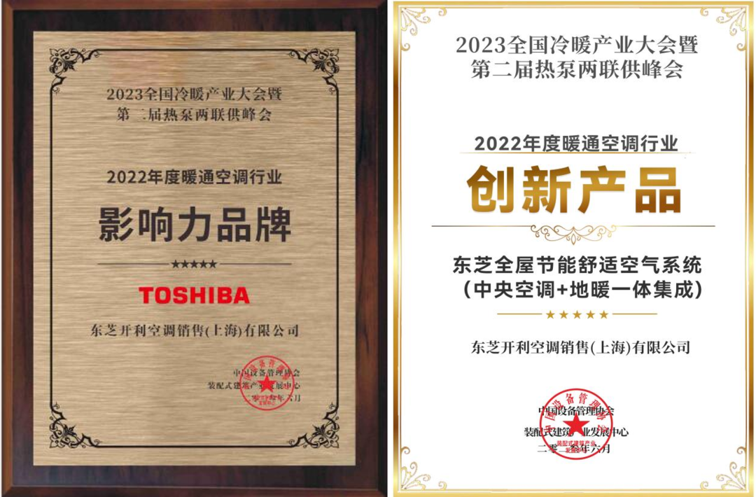 东芝空调与积微GCHV一举斩获2023全国冷暖产业大会四项大奖