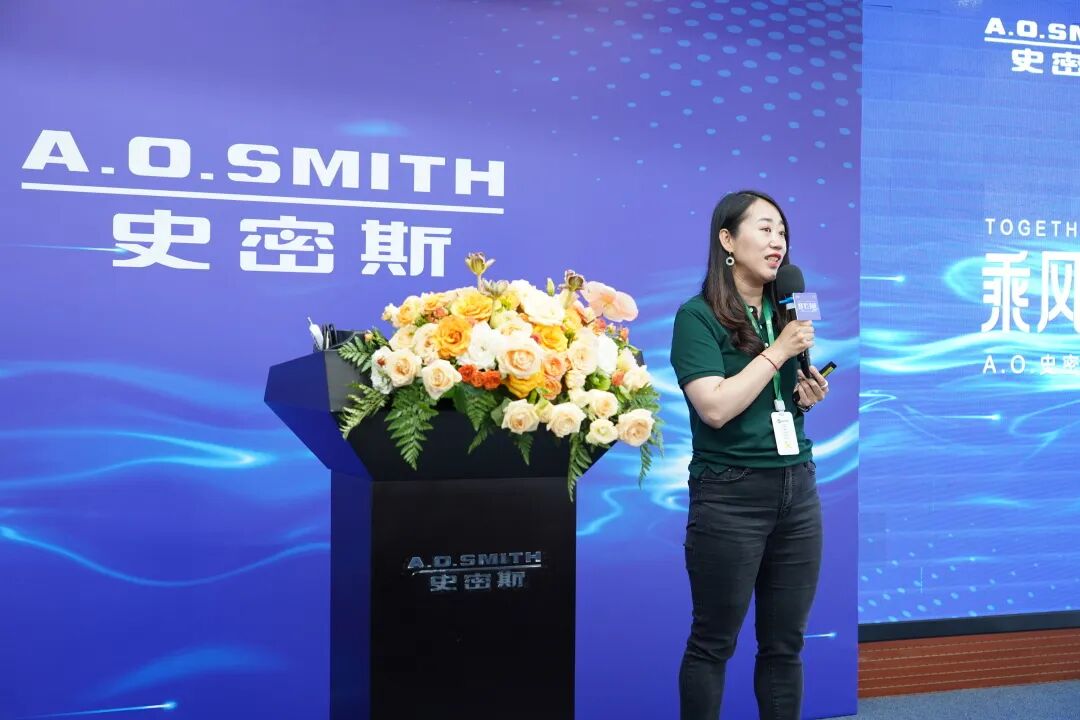 随后,商用营销人力资源经理杜嘉梅,重点分享A.O.史密斯愿景及使命:“创造美好生活“,”成为行业领导者,为客户带来卓越的长期价值”。如何从口号到行动,最终转变为生产力,A.O.史密斯通过不断思考与实践,以三大文化密码(TOT 最重要的事、SOT 信任的速度、GPS 微笑公司)、全面服务战略、以及生态圈合规共建为重要抓手,用“诚信、创新、致力于客户满意”价值观与生态圈合作伙伴共同快速驱动业务。