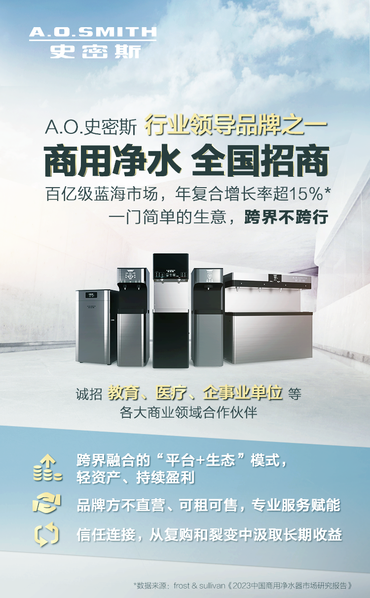 A.O.史密斯商用净水诚招教育、医疗、企事业单位等各大领域合作伙伴!