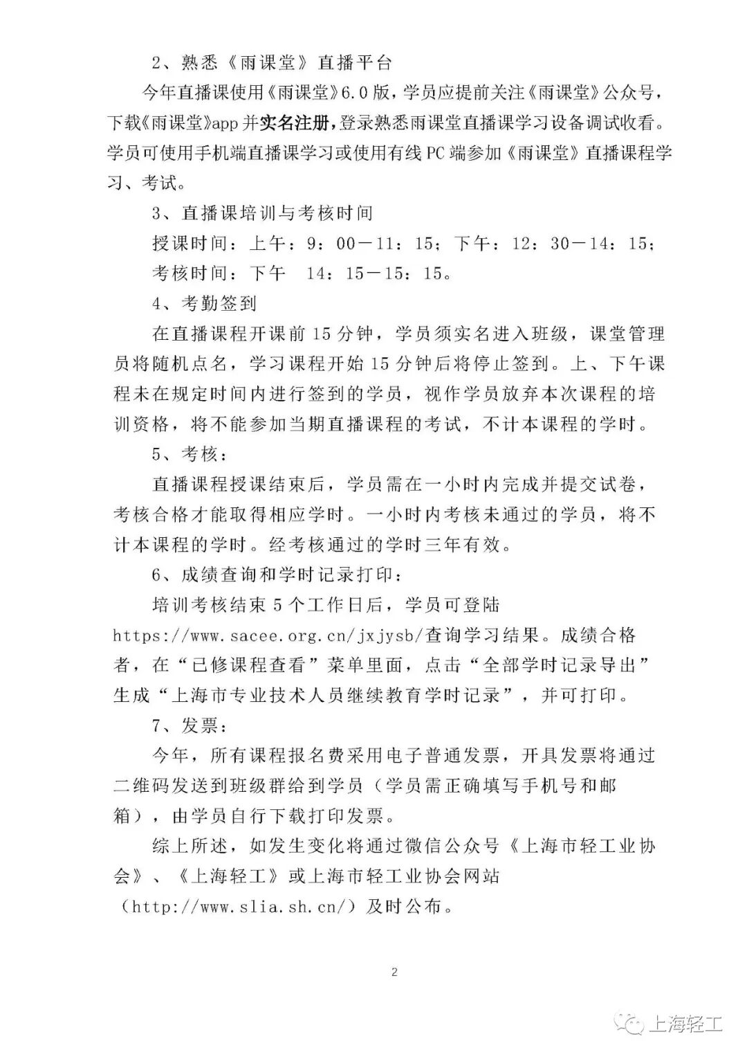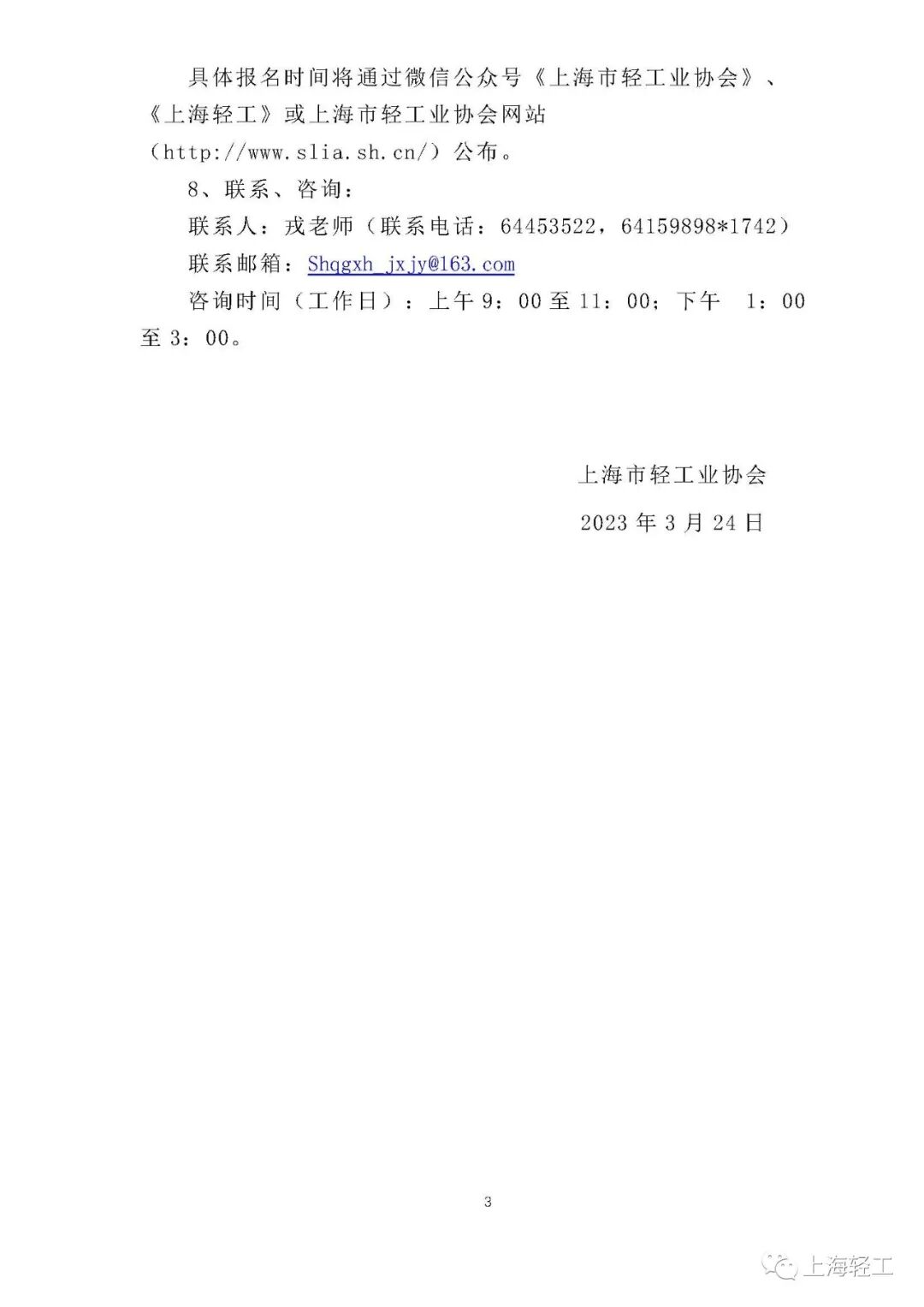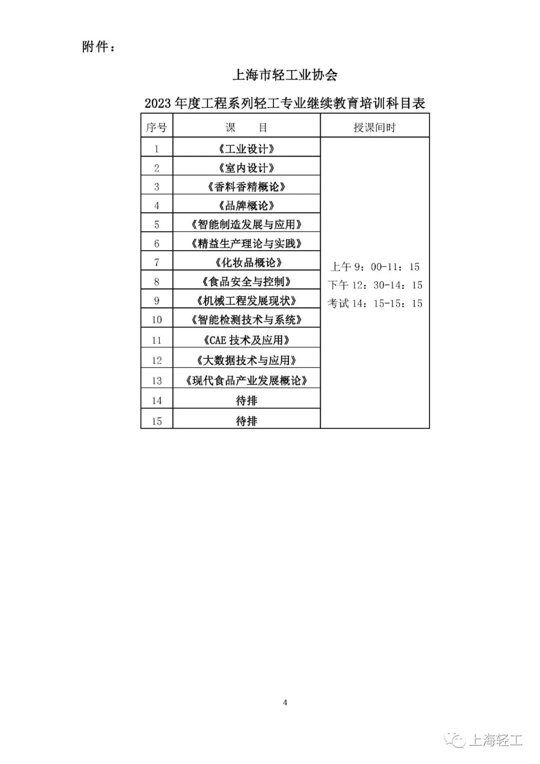 上海市轻工业协会2023年工程系列轻工专业继续教育专业科目培训计划